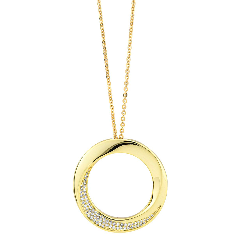 Размер изделия: 80 см Масса изделия: 15 г бронза, покрытие золотом, кубический цирконий Колье с крупным круглым подвесным модулем с цирконием. Покрытие золотом. Размер подвески 3,2 см. застежка карабин.