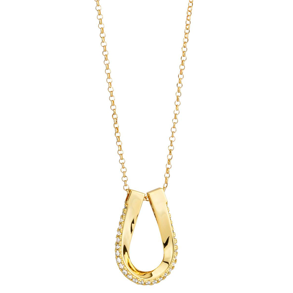 Размер изделия: 44,5 см Масса изделия: 15 г бронза, покрытие золотом, кубический цирконий Колье с подвеской в форме капли, украшенной цирконием. Покрытие золотом. Длина 39 см, с возможностью увеличения до 44,5 см. Размер подвески 3 см.