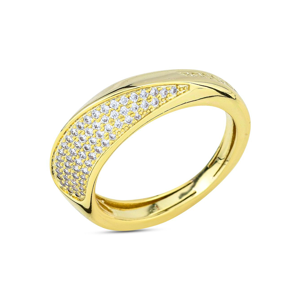 Размер изделия: безразмерное Масса изделия: 7 г бронза, покрытие золотом, кубический цирконий Кольцо с покрытием из желтого золота и центральным элементом из кубического циркония. Размер регулируется от 13 до 19. Размер: 4 мм; высота в центре 8 мм.