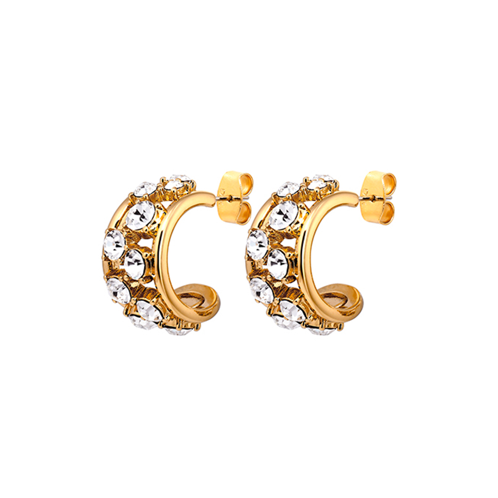 Размер изделия:2 см Масса изделия: 4 г ASTOR - Новый взгляд на серьги-кольца. Классические и элегантные серьги-кольца с двумя полосками, обрамленными кристаллами разного размера. Выглядят классически, но при этом - совершенно по-новому. Модель выполнена в золотистом цвете с белыми кристаллами. Датский дизайн без содержания никеля.