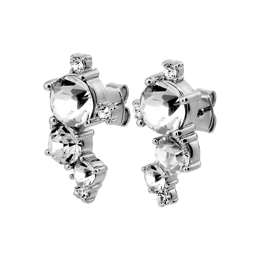 Размер изделия:2,2 см Масса изделия: 2 г CURRA — элегантные и необычные серьги-гвоздики с множеством круглых кристаллов разных размеров фацетной огранки, расположенных в асимметричном узоре. Необычный, но классический дизайн. Можно носить отдельно или с серьгой-гвоздиком меньшего размера во втором проколе. Здесь представлены в белом хрустале на серебристой основе. Датский дизайн — не содержит кадмия, свинца и никеля.