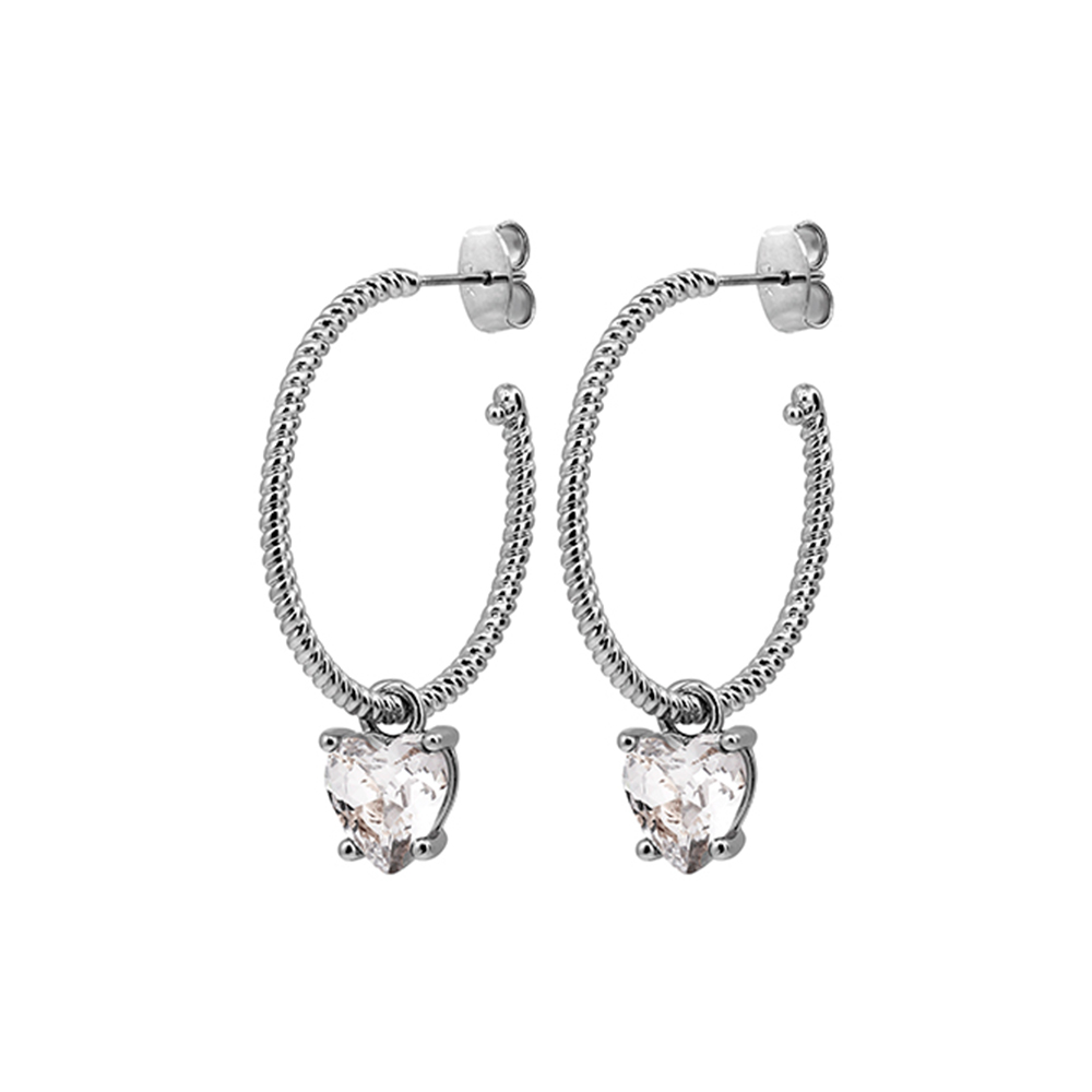 Размер изделия:2,6 см Масса изделия: 2 г ELANA — красивые кольца с подвеской в виде сердца из граненого кристалла. Подвеска диаметром 8 мм. Здесь представлена в блестящем серебристом цвете с белыми кристаллами. Датский дизайн ручной работы без использования никеля.