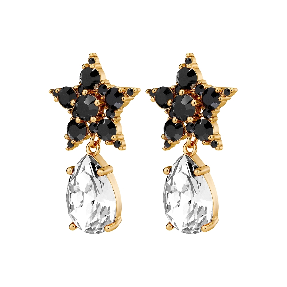 Размер изделия: 3,2 см Масса изделия: 8,6 г HYDRA — это изумительные серьги-гвоздики в форме звезды с хрустальной подвеской в виде капли. Серьги богато украшены многогранными кристаллами симметричной огранки. Представлены в золотом цвете с черными и белыми кристаллами. Элегантный и игривый стиль, отлично подходящий для вечернего выхода. Выполнены из полированной латуни компанией DYRBERG KERN и выглядит просто потрясающе. ДАТСКИЙ ДИЗАЙН.